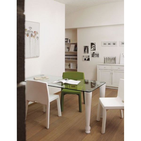 Jedálenský stôl Osvaldo od talianskych Slide v čistom dizajne s jemnými detailmi na stolových nohách ktoré si zvolíte v širokej škály farieb. Dokonca aj každú farebne inú.